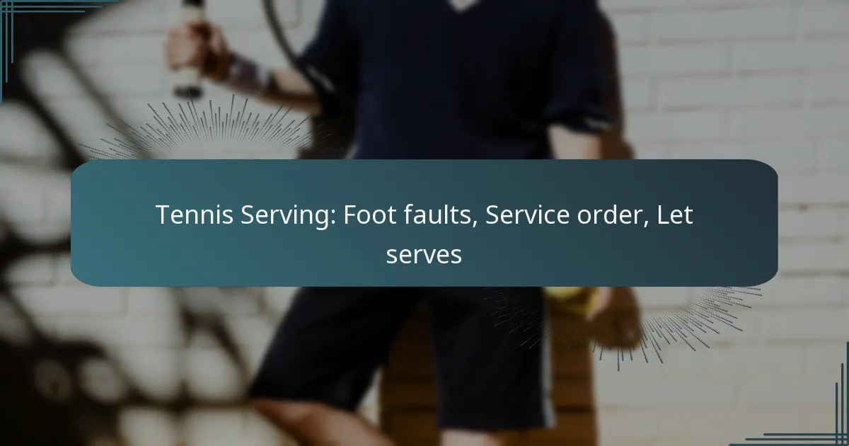 Tennis serving involves several critical rules that can significantly impact a player’s performance. Key aspects include foot faults, which occur when a player steps over the baseline before serving, the importance of maintaining the correct service order during matches, and the concept of let serves, where a ball hitting the net still allows for a re-serve if it lands in the correct box. Understanding these rules is essential for players to enhance their serving technique and overall game strategy.